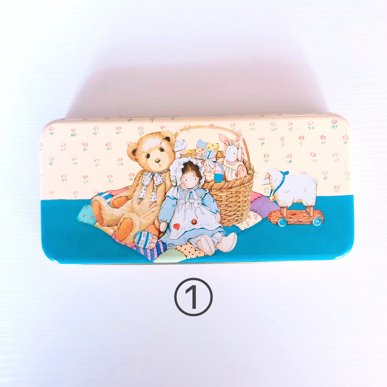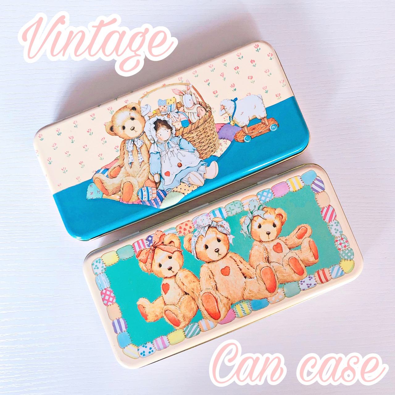 Vintage☆テディベア缶ケース・Teddy bear レトロファンシー雑貨