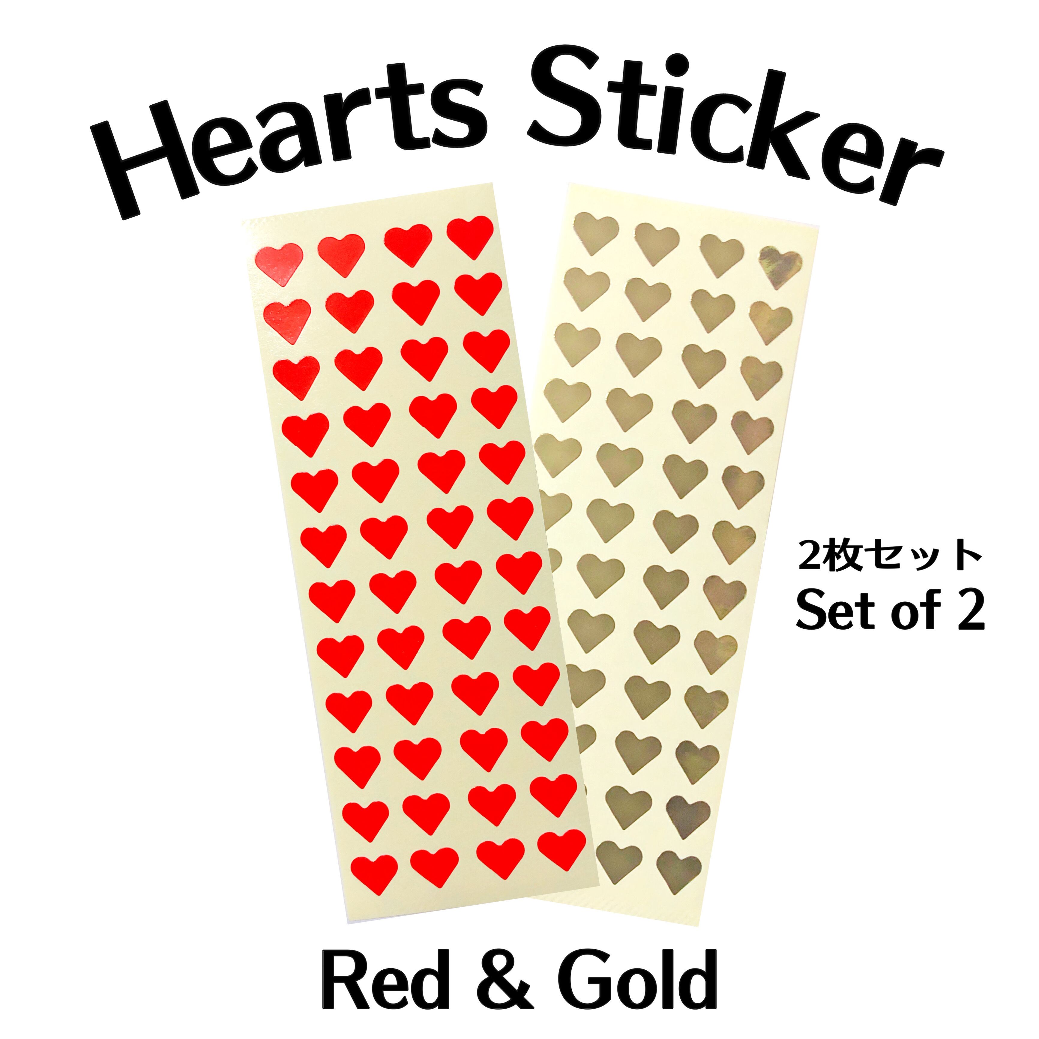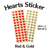 赤いハートとゴールドのピカピカハートシール。