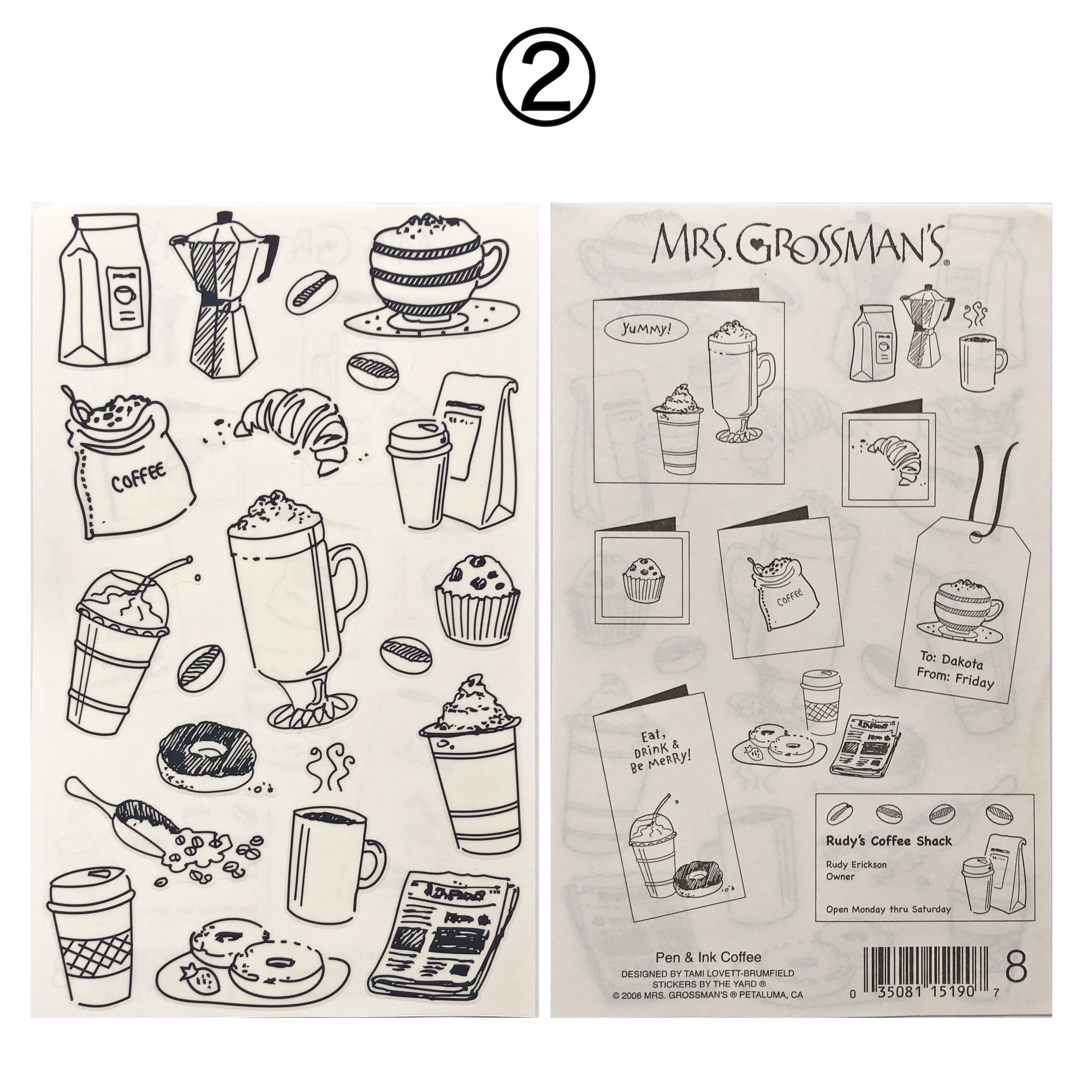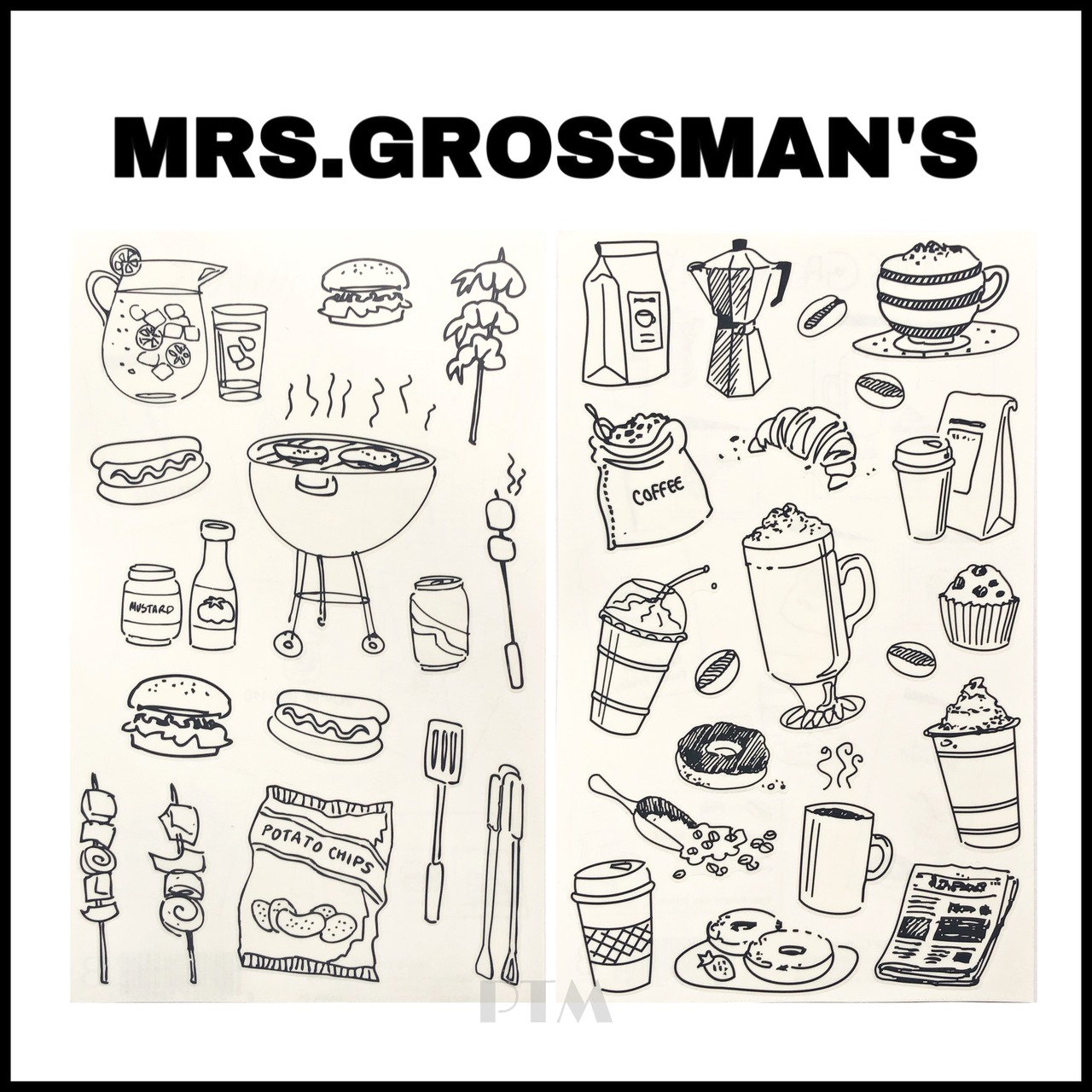 Mrs.grossman's★GT 手書き風 食べ物・Pen & Ink BBQ/Coffee ミセスグロスマン輸入海外シール