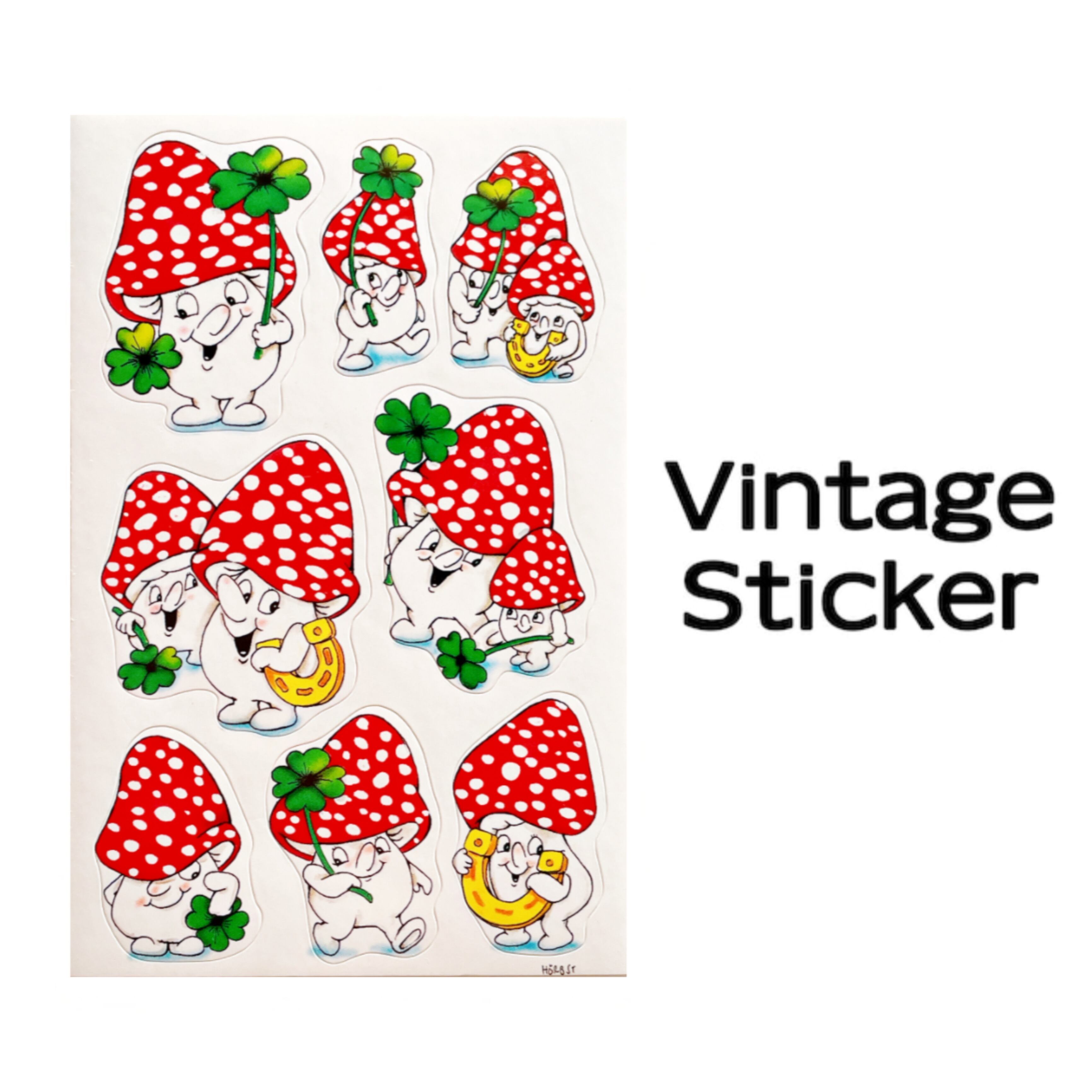 Vintage sticker☆キノコさんとクローバー・ Shamrock with Mushroom 輸入海外レトロシール