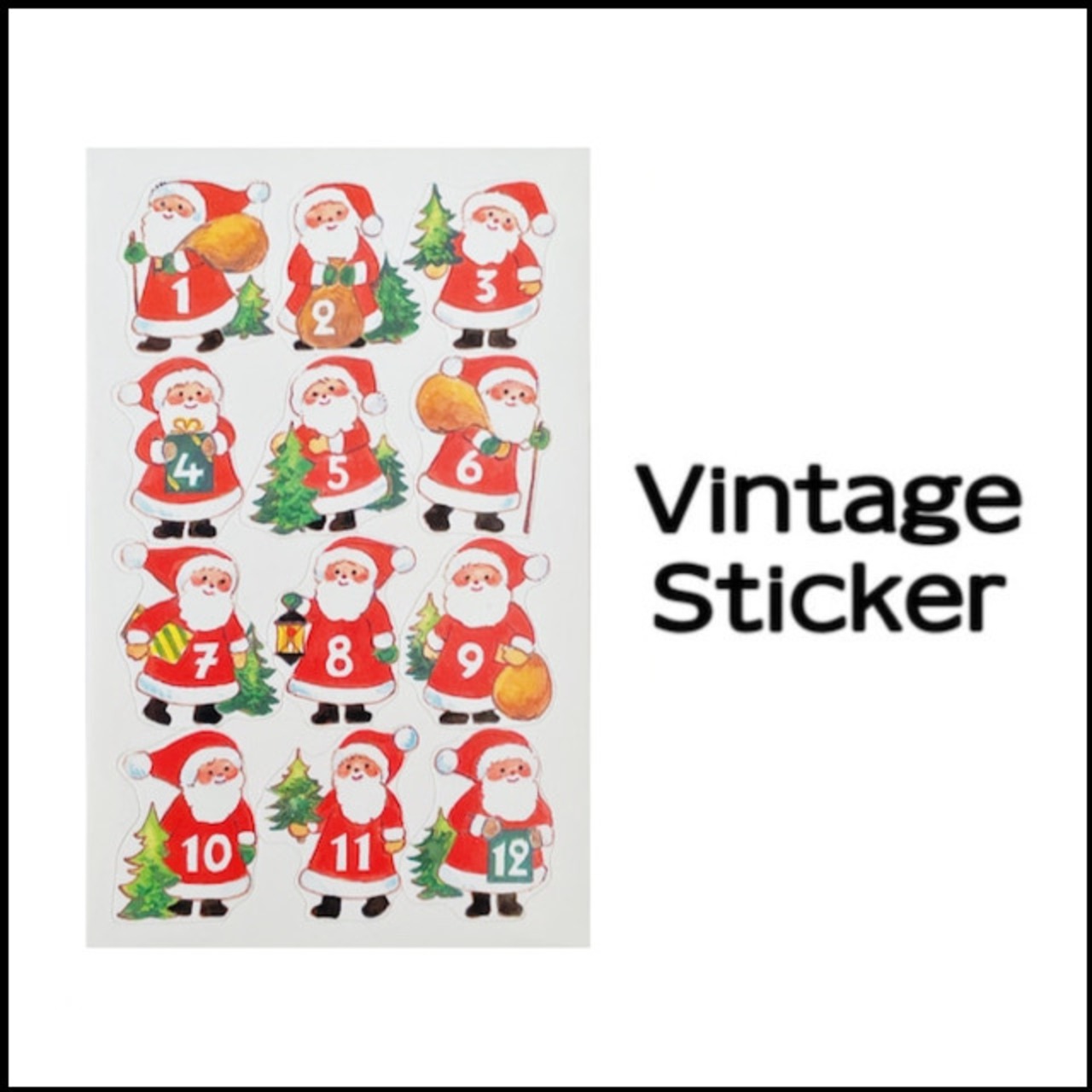Vintage sticker☆サンタクロースと数字/クリスマス・Santa Claus /Christmas 輸入海外レトロシール