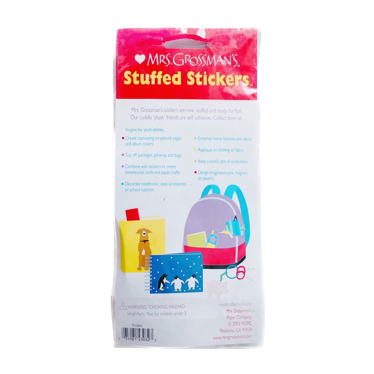Mrs.grossman's★コアラぬいぐるみ・ Stuffed Stickers / koalas ミセスグロスマン輸入海外シール